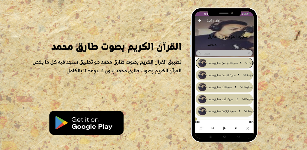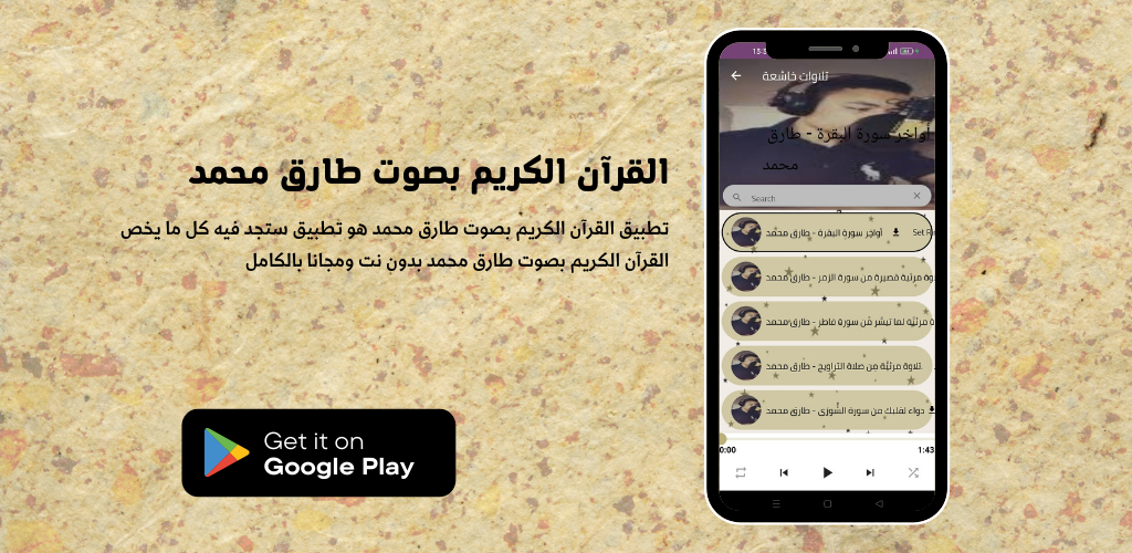 The Tariq Muhammad Noble Qur’an application allows you to hear and download the Noble Qur’an with the voice of the reciter Tariq Muhammad, and you can download the Noble Qur’an to your mobile phone easily and conveniently through one application that includes humbled recitations of the Noble Qur’an mp3 with the voice of the Noble Qur’an in the voice of Tariq Muhammad