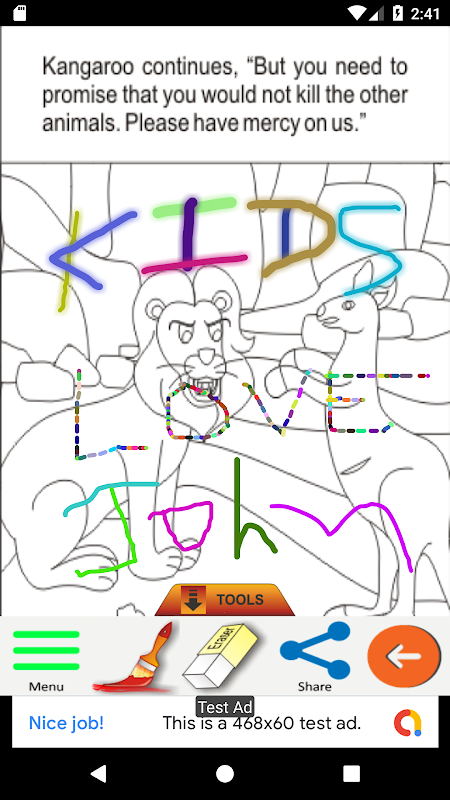 Page 5: Kangaroo continues, “But you need to promise that you would not kill the other animals. Please have mercy on us.”