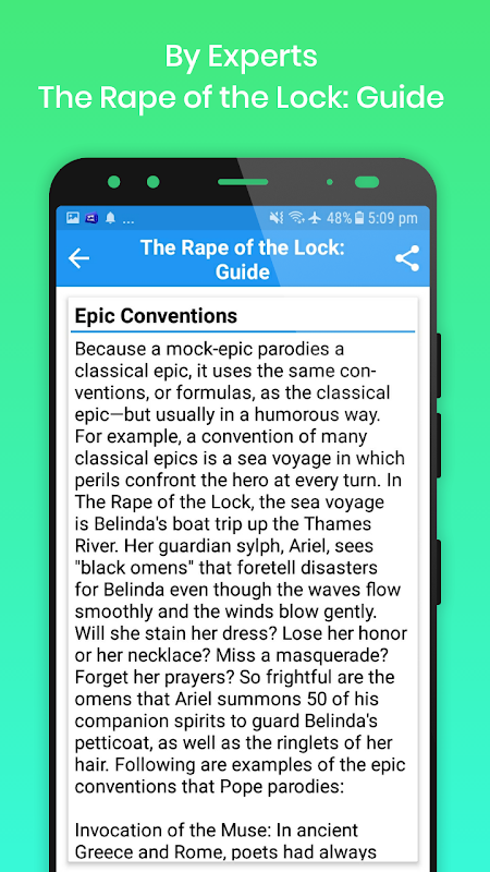 This Guide app works both online and offline, and contains 36 basic topics about one of the famous poems of Alexander Pope, The Rape of the Lock.