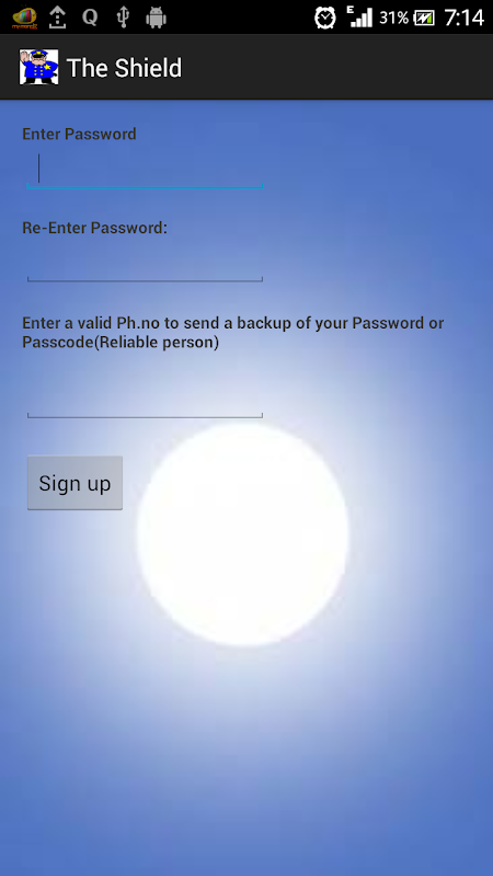 1.The app contains a Signup screen where you need to Enter password to enter the app and a backup phone number when you forget your password or keywords.