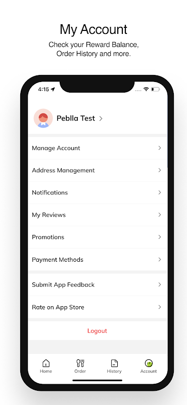 Check your Reward Balance, Order History and more.