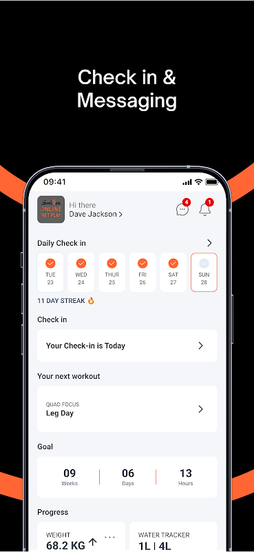 Food logging, exercise tracking, step monitoring, water intake, education, daily accountability, monthly check-ins and quick support.