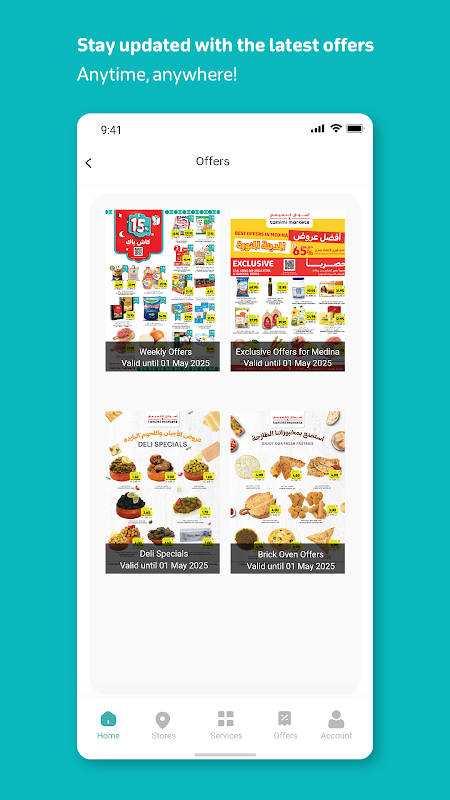 Tamimi Markets' new smartphone app gives you instant access to Reward Programs, weekly flyers, special promotions, personal shopping lists, store locator maps and phone numbers, and more! Simply download our app. Arabic or English language is automatically set based on Device settings