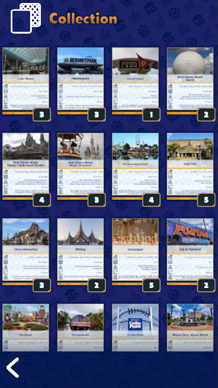 Discover hundreds of beautifully illustrated cards featuring iconic parks worldwide, with continuous new additions.