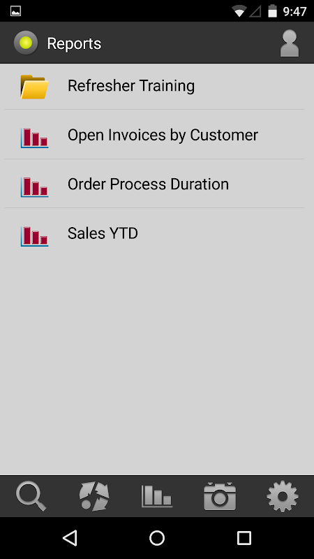 • In the Report mode, users can view saved reports and generate ad-hoc reports to analyze key company processes.