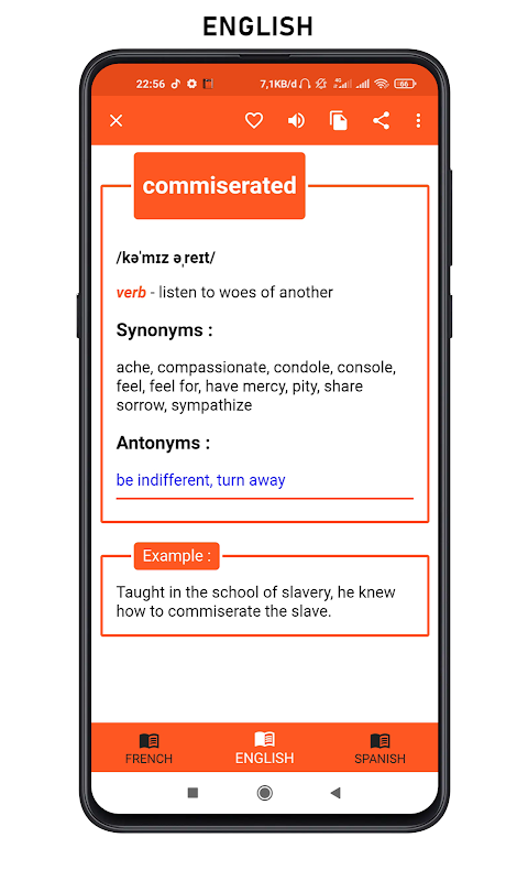 Free application more than 100 million English, French, and Spanish synonyms and antonyms.