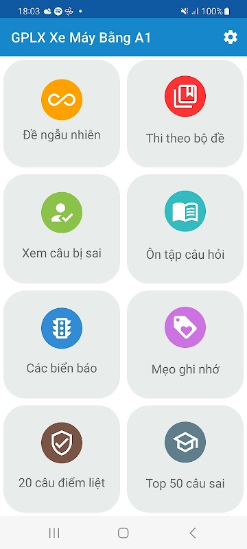 Ứng dụng gồm đầy đủ 200 câu hỏi bằng lái xe máy A1; 450 cho bằng lái A2 hoặc 500 cho bằng lái A3, A4 mới nhất năm 2020 với các câu điểm liệt dùng cho sát hạch, cấp giấy phép lái xe máy giúp các bạn chuẩn bị thi bằng lái xe máy có thể ôn thi phần lý thuyết một cách nhanh chóng và hiệu quả nhất.