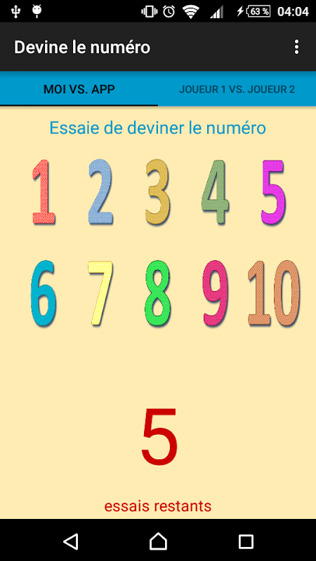 Try to guess the number using the number selectors. Play against app or another player.