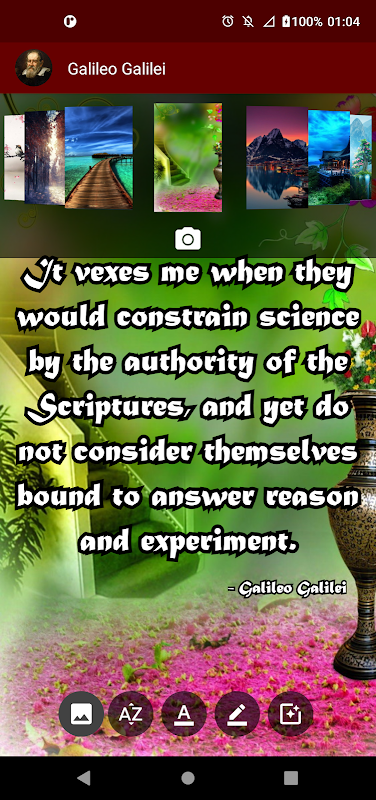 All the quotes are shared on a beautiful photo or image which you can customize according to what you like. You can change the background, style, color and size font. Your posts on social networks will be sensational!