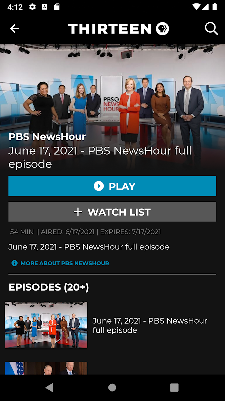 Your favorite THIRTEEN and PBS shows streamed right to your Android device!