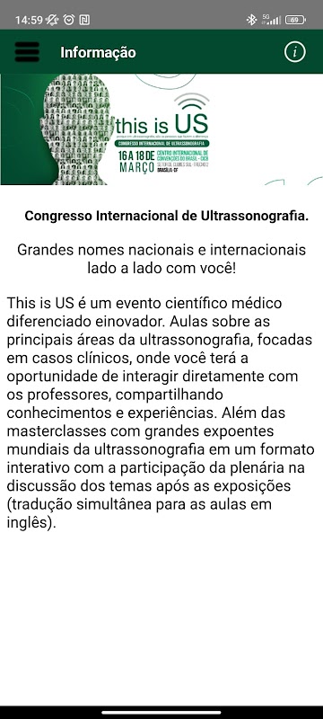 This is US is a unique and innovative medical scientific event. Classes on the main areas of ultrasound, focused on clinical cases, where you will have the opportunity to interact directly with professors, sharing knowledge and experiences. In addition to masterclasses with major world exponents of ultrasound in an interactive format with the participation of the plenary in the discussion of themes after the presentations (simultaneous translation for classes in English).