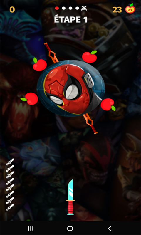 Click throw the knife on the circle and avoid the other knives in order not to lose the challenge.