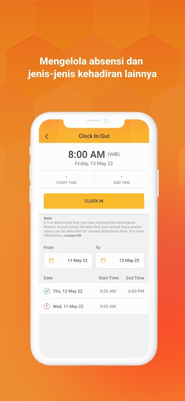- Permintaan dan pengelolaan absensi, cuti, dan jenis kehadiran lainnya