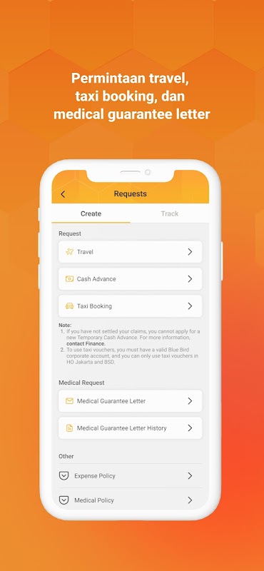 - Permintaan untuk travel, cash advance, dan medical guarantee letter