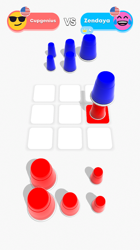 Play real-time with friends. No robots, just real people! It's three in a row but with a BIG DIFFERENCE! Firstly, you can stack your cups, plus you can move them, so it's a really tactical battle. Every game is totally unique and it will really make you think how to play best to beat your opposition. Get ready to stack, get ready to tick-stack-toe!!