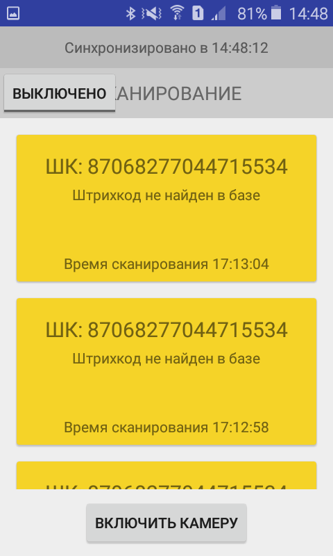 Application extremely easy to use and has two scanning modes: confirmation and without confirmation. During work at night or in a dark place, you can turn on the backlight.