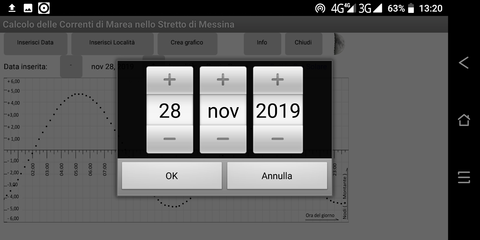 The app calculates the direction and the speed of the current at the reference sea gauges of "Punta Pezzo" and "Punta Ganzirri". For the other localities of the Strait, called secondary localities ", there are some calculation methods reported in the aforementioned publication.