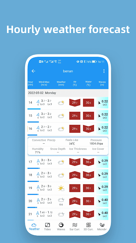 4.Ocean wave forceast: support access to wave height, wave cycle, wave direction and 3 categories of wave data.