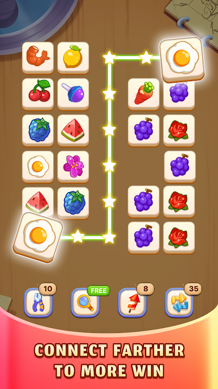 Match Identical Tiles – Tap on two tiles with the same design, and if they can be connected with up to three straight lines, they disappear.