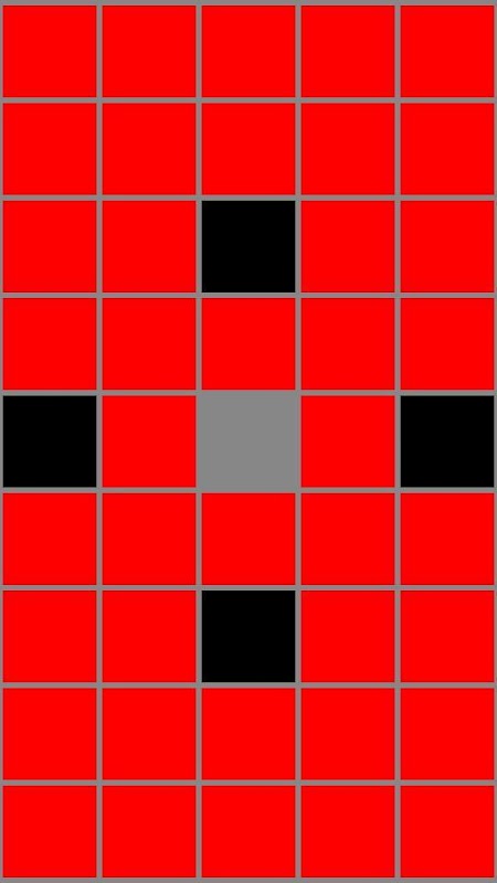 The screen is divided into 5x9 fields. A new game starts with all but the center field covered by black tiles.