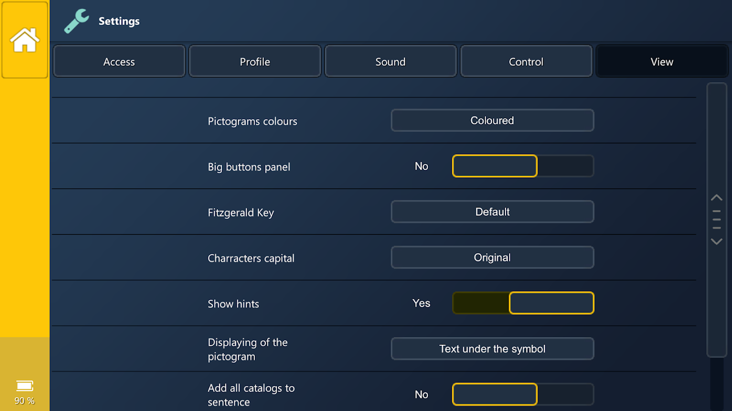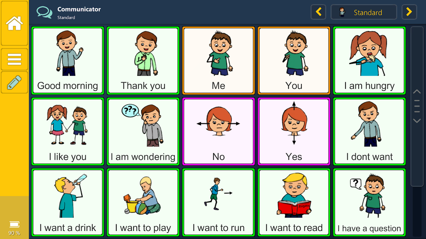 Application contains clear and understandable symbol system, which can be processed by a build-in voice synthesizer. Users are capable of adding and categorising their own symbols, pictures and vocabulary for the ongoing conversation.
