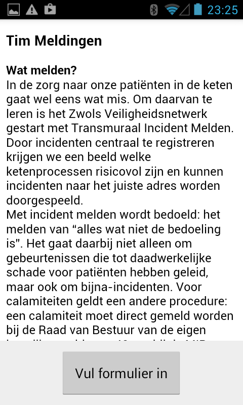 This app allows participants ZVN a Transmural Incident Reporting (TIM)