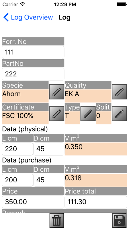 This app serves the purpose of offline timber purchases. Synchronize master data of main system to your device. Create a purchase and add all purchase information’s and logs. Send timber purchase to main system by upload and/or email. In addition print purchase confirmation on mobile printer.