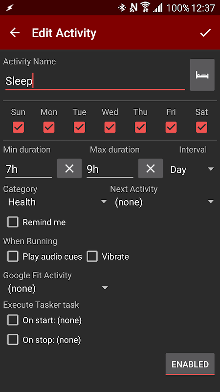 ★ Each activity can have a reminder shown at a specific time of each day it is supposed to be done.