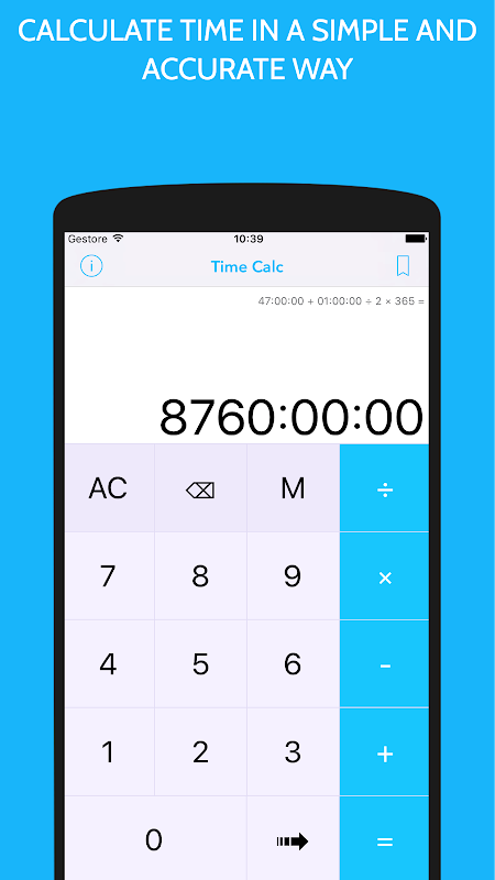 Time Calc: a beautiful simple and accurate time calculator that allows you to perform elementary operations on units of time like hours, minutes and seconds.