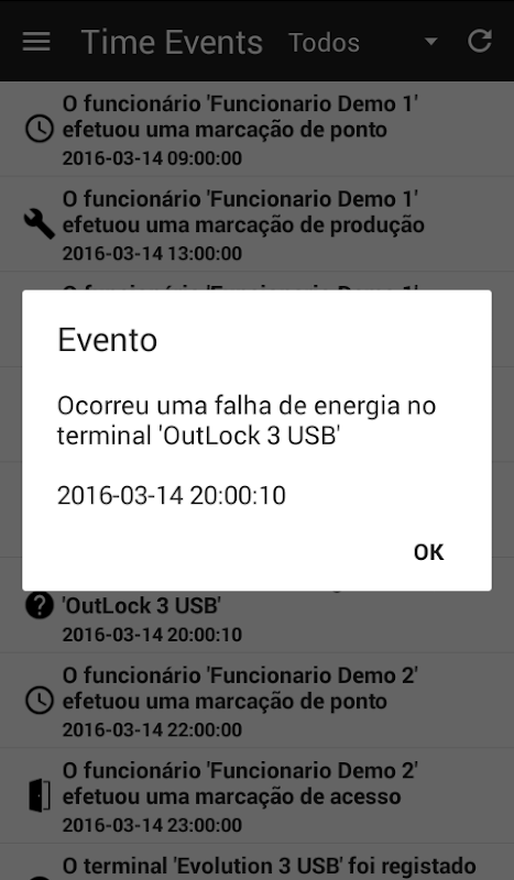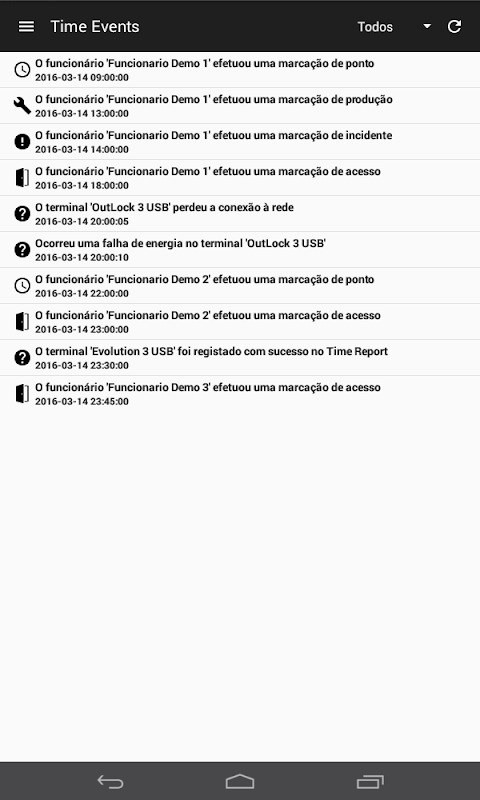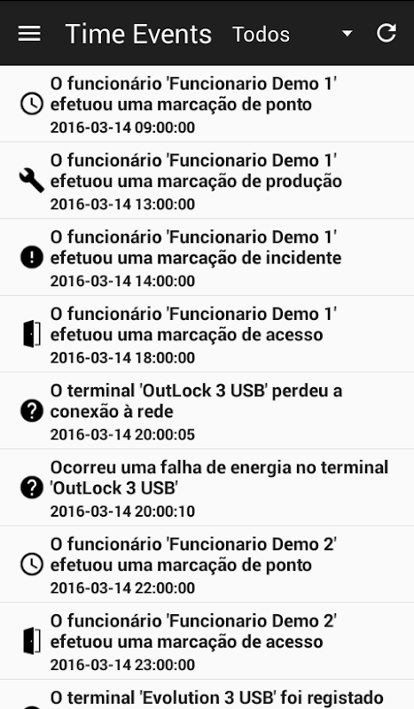 Time Events is an application especially designed for those who wish to have full control over what is happening in their companies, through events triggered by the Acronym's terminals.