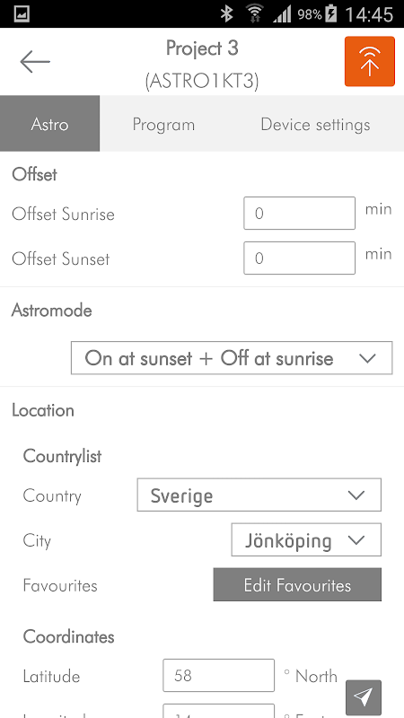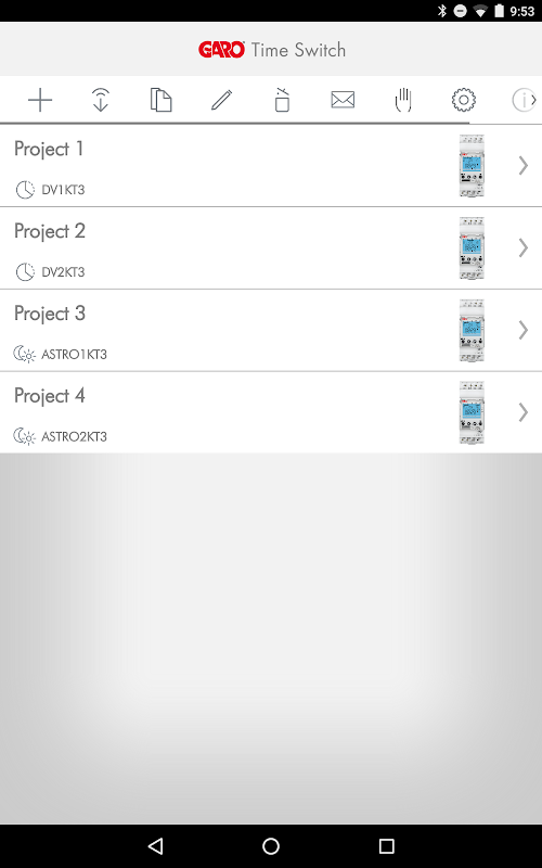 GARO Time Switch app is an application made to make programs easier and to have a better overview of what settings is done in the digital time switches from GARO’s new KT3 line. The app can be used on a smartphone or a tablet with Bluetooth. Connection between tablet/phone and the Time switch goes through a Bluetooth dongle. The dongle is an accessory to the KT3 line of time switches and is needed to transfer the program from application to the time switch. The Time switch app controls both time switches with weekly program and also for switches with an ASTRO function.