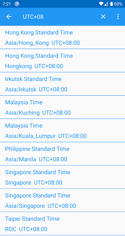All time zones of the world are available to select from. From New York to Beijing. And some mysterious time zone that make no sense.