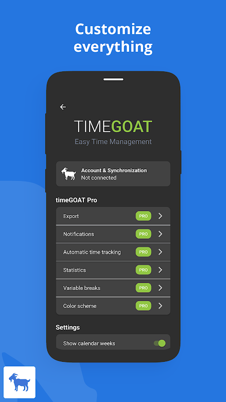 TimeGOAT works the way you want it to. As a simple time tracking app, as a shift planner, as real-time time tracking or simply for your enjoyment as a nerd.