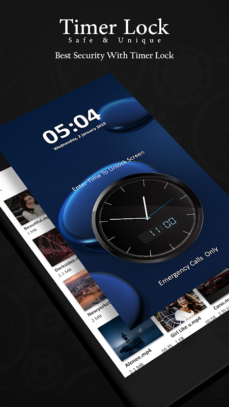 Timer lock. Best app to hide photo video in your mobile. Its support in all android device. Use this Timer vault to hide pictures, hide photos, hide videos and use app lock secretly inside app. No one will have the idea that there is a highly secured vault ingeniously hiding in your clock.