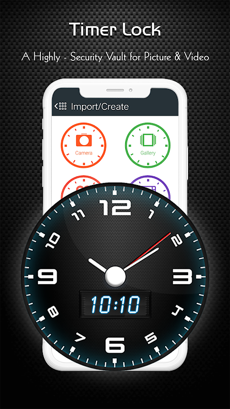 Amazing And Unique Way to Lock your phone with Lock screen - Time Password. Timer Lock - Hide photo, video and Files . Best Security vault app for your private photos and video. Secretly Hide Photos and videos Behind Working Clock. Secret Gallery clock vault to hide photos, hide videos, file locker.