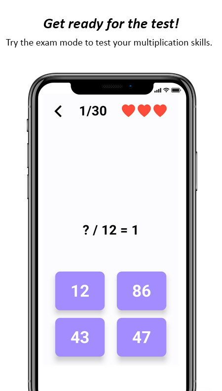Exam Mode: Test your skills and knowledge in exam mode. Choose a difficulty level and the app will provide you with tasks to solve. Evaluate your progress and find out how well you know the multiplication table.