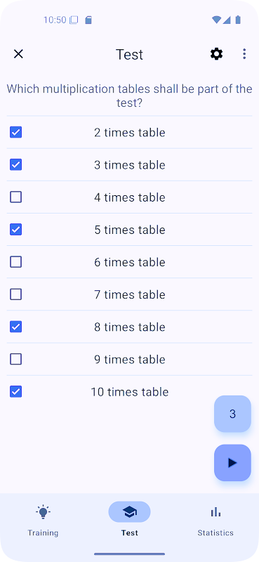 ✔ Test mode: Complete a randomly generated test for the times tables of your choice