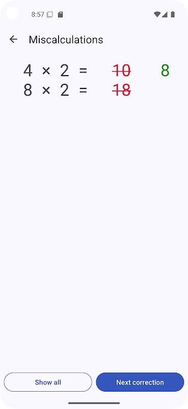 ✔ Feedback: At the end of each mode, you'll see your score and the calculations you answered incorrectly, along with corrections