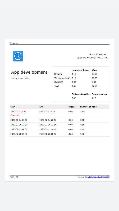Keep track of your worked hours easily and automatically with the Timesheet app.