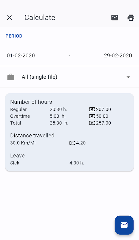 * Send your hours through the mail (cvs/excel, text and PDF)