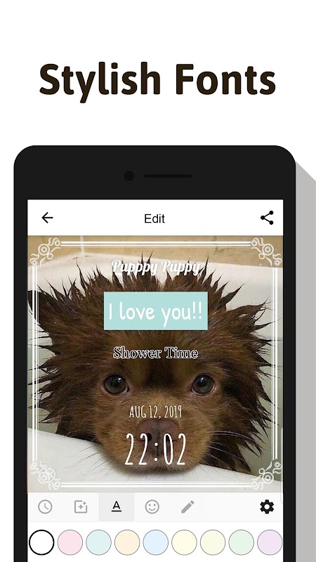 Add handmade stickers to your photos. Leave your mood at the time with pretty and cute stickers.