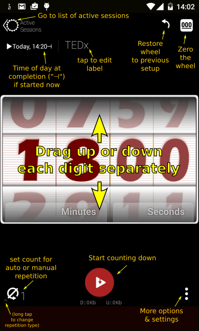 Convenient buttons to allow pause/resume, reset (restore the same session, idle) or restart (repeat immediately the same session), and more.