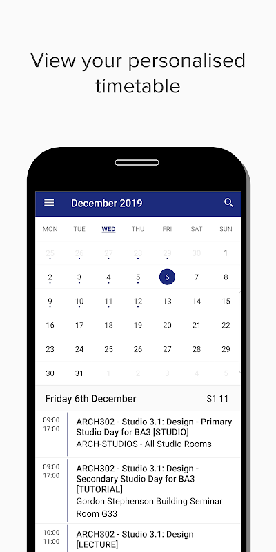 Quick and easy access to timetables for students & staff, direct from your phone