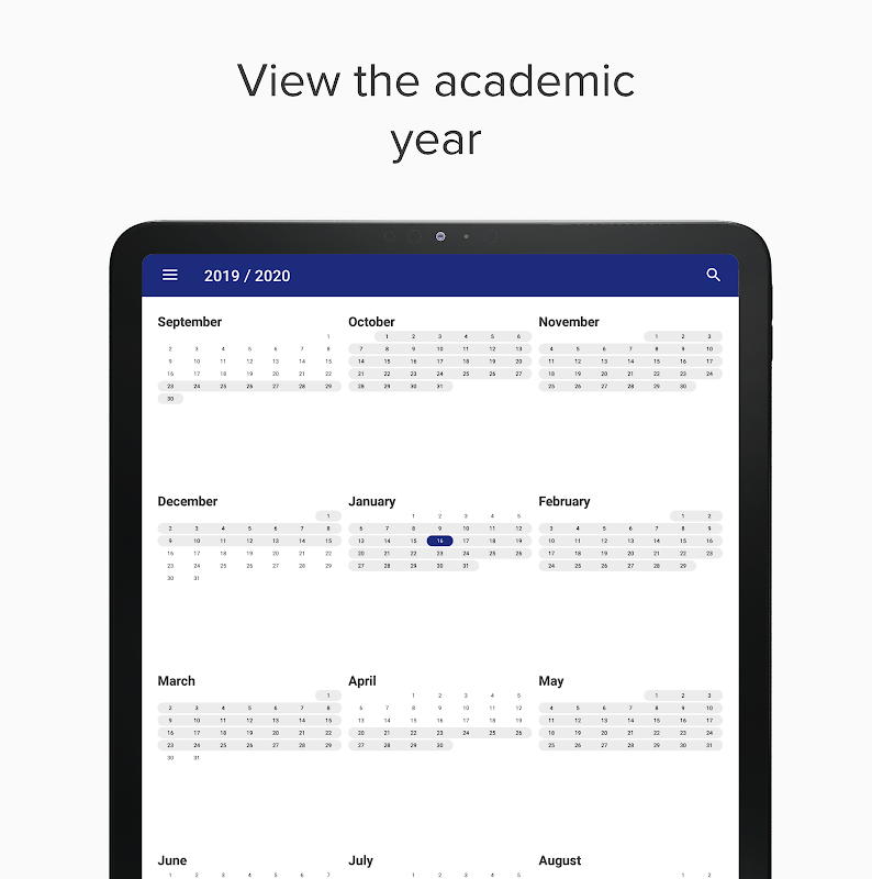 - Year view, with an overview of the academic year