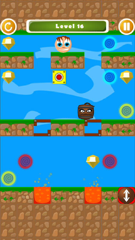 Timmy's Gems is a fun gravity puzzle game. Invert gravity to help Timmy get to the place impossible to reach. Beware of bombs,enemies and lava. The assets were designed using Inkscape. Can you complete all levels ?