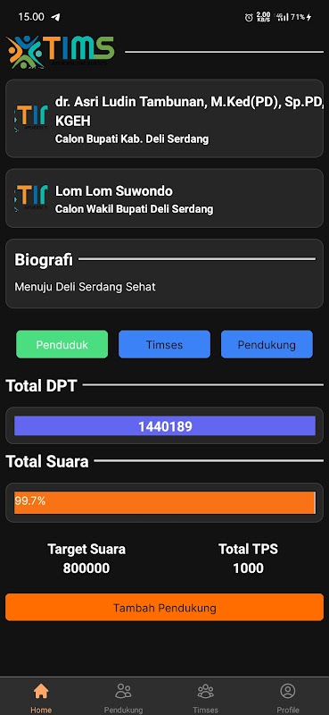 Useful application to find out total support for regional head elections with details of total supporters, names of supporters, NIK of supporters and polling stations