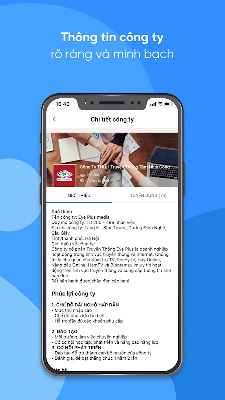 Timviec.com.vn combines with thousands of companies and employers across the country, so the source of work is extremely abundant and diverse, making it easy for candidates to choose according to many different filter criteria such as: By industry , by position, by salary range, by work experience, ...