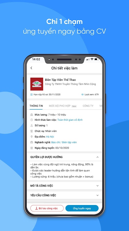 The only thing that you have to do to be able to own all these CV stores is to register candidate account on Timviec.com.vn (completely free). This app even does not limit your CV downloads per day, per week, and your privilege is forever.