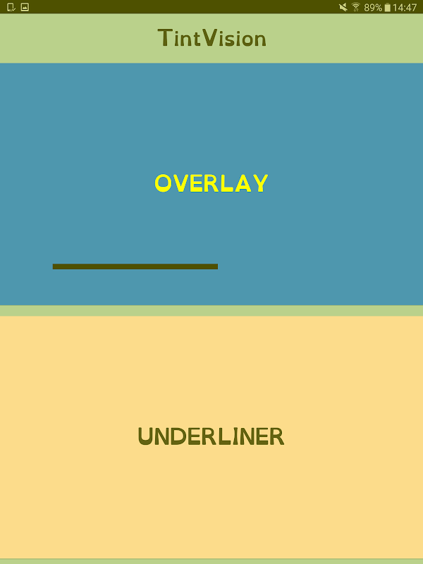 TintVision is a free app intended to improve user experience for people, primarily with dyslexia, and other vision impairments by providing a colour overlay and draggable underliner tool. Unlike other apps which allow you to overlay the screen with a coloured filter, TintVision is designed with accessibility in mind.