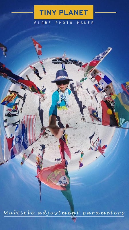 With Tiny Planet - Globe Photo Maker you no need for hours in Photoshop or After Effects to create amazing tiny planet photos. An amazing effect called tiny planet (also named small planet, globe photo or stereographic projection) in this app will help you do it!